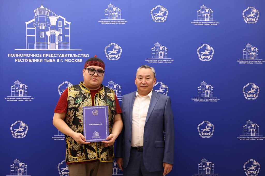 В Полномочном представительстве Республики Тыва в г. Москве Заместитель Председателя Правительства Республики Тыва — полномочный представитель Республики Тыва в г. Москве Чечен Чоксум вручил благодарность известному артисту Аясу Дамдыну. Аяс Дамдын является лауреатом международных конкурсов. Музыкант известен своим неповторимым стилем исполнения хөөмей (тувинского горлового пения) в современной интерпретации. Благодарим Аяса за его творчество и популяризацию […]