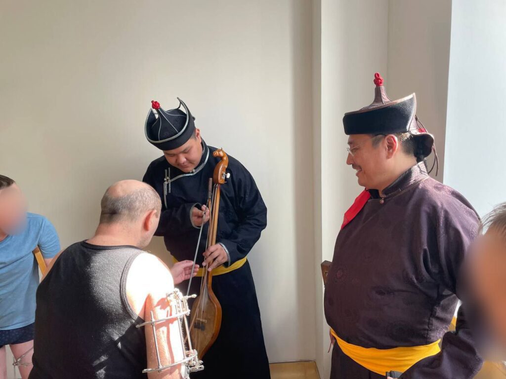 Дуэт отца и сына Кошкендей выступили с увлекательными номерами и показали мастер класс.Чингис-Хаан Ооржак подготовил для бойцов свежевыжатые гранатовые соки, фрукты и сладости.