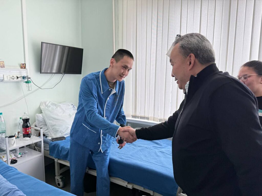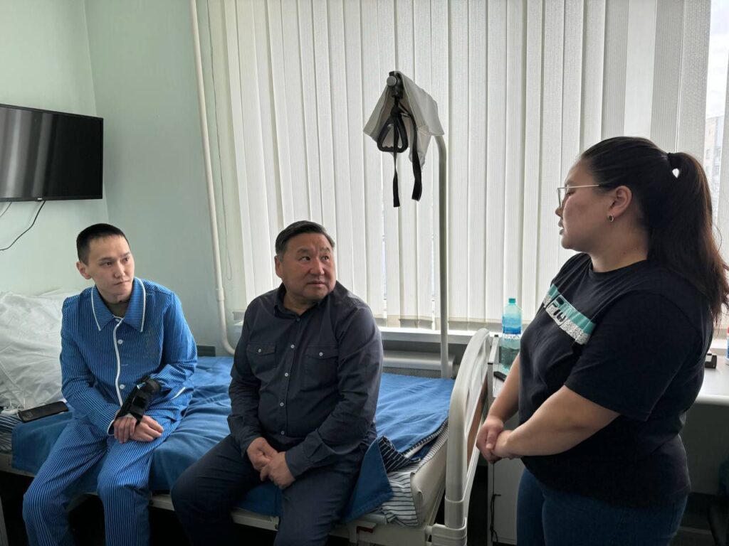 Сегодня, Глава Республики Тыва Владислав Ховалыг и заместитель Председателя Правительства Республики Тыва — полномочный представитель в г. Москве Чечен Чоксум посетили Главный клинический госпиталь им. Н.Н. Бурденко и встретились с раненым бойцом Сайгыном Сендином.