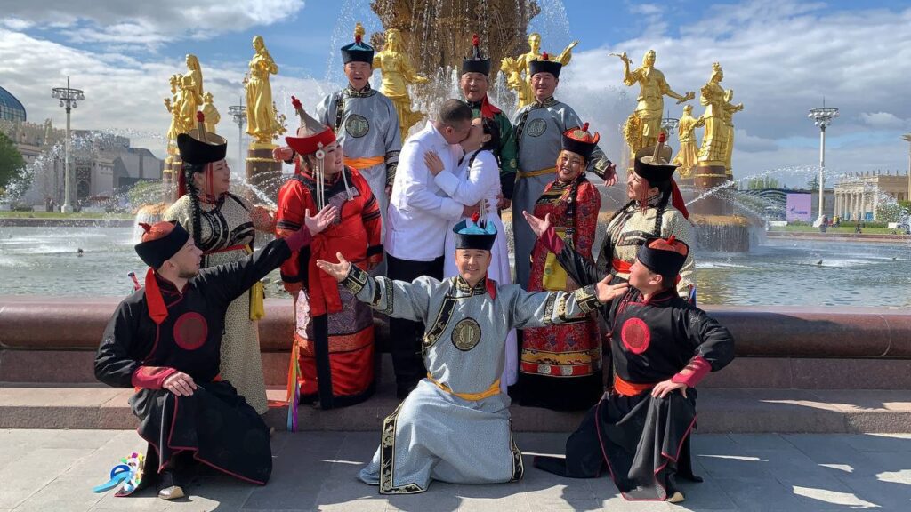 Вчера Александр Агбаан и Солангы Тамдын соединили свои сердца на Главной сцене ВДНХ. Пара приняла участие в зрелищном шествии в сопровождении артистов, музыкантов и аниматоров.