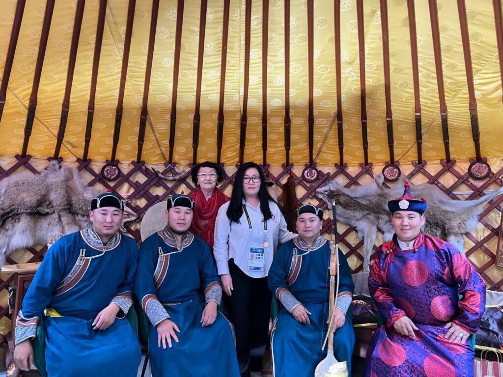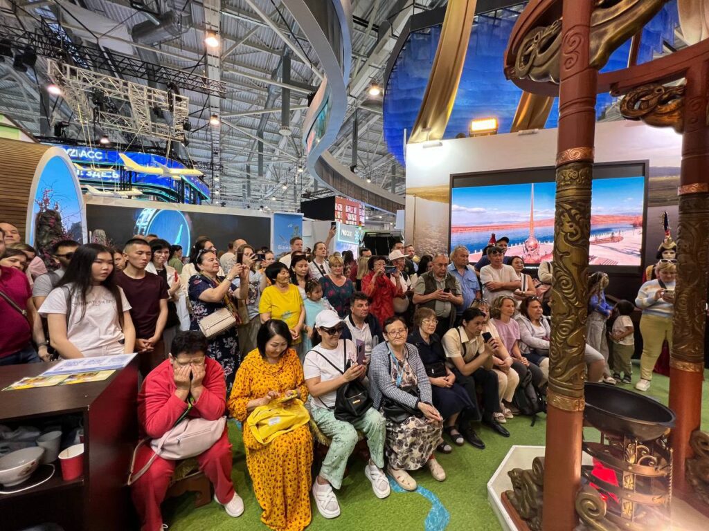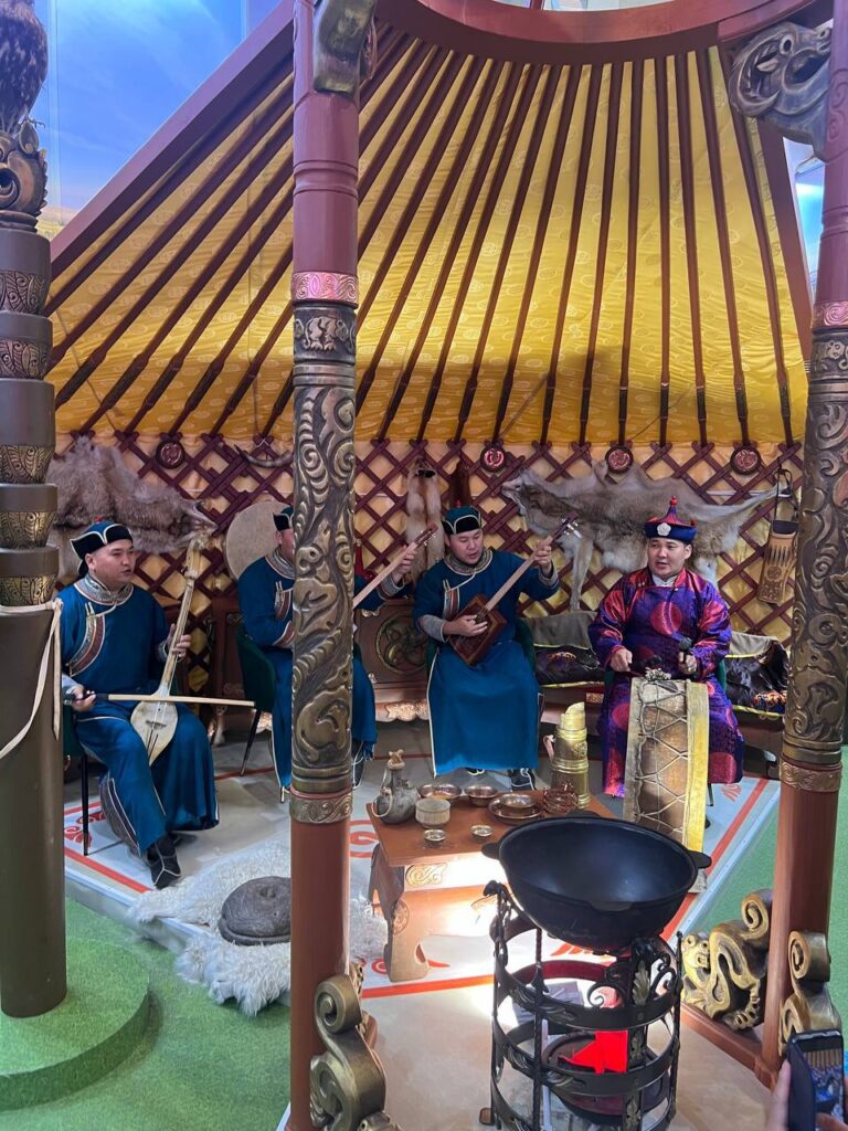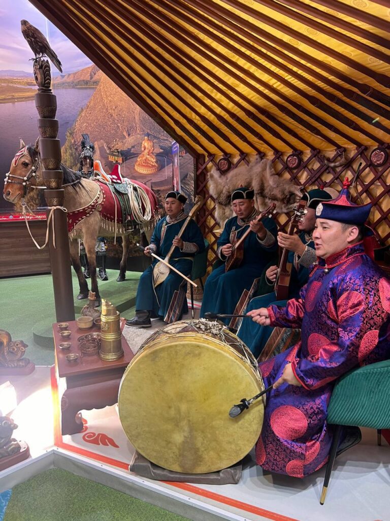 На Международной выставке-форуме «Россия» у стенда Республики Тыва выступили солисты Тувинского национального оркестра, в их числе: народный хөөмейжи РТ и дирижер Тумат Эртине Андреевич, молодые хөөмейжи Ооржак Азиат Анатольевич, Суге-Маадыр Начын Дозурашович, и Донгак Найдан Сылдысович.