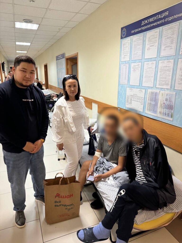 Сотрудник представительства Тувы Ноябрина Билва пообщалась с ранеными по проблемным вопросам и передала с активистами продукты питания. Военнослужащие были рады встрече и благодарили представительство за постоянную поддержку и внимание.