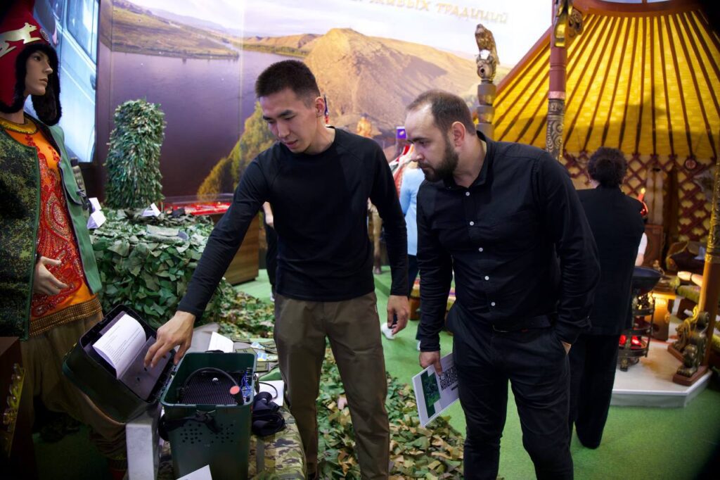 Так, на стенде Республики Тыва были представлены достижения изобретателей и умельцев со всей республики. Члены Кулибин-клуба Тувы Алдын Байкара и Алаш Шыдар показали свои технологические разработки – дроны-камикадзе, дроны-сбросники, сеткомёты «Шу-де», антидроновую систему подавления «Хемчик» и многое другое.