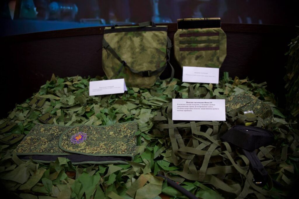Координатор Народного полка Республики Тыва Александра Шагирова и волонтер полка Наталья Затолочная представили на выставке маскировочные сети, пятиточечники, напашники и защиту от тепловизора, разработанные в Туве.