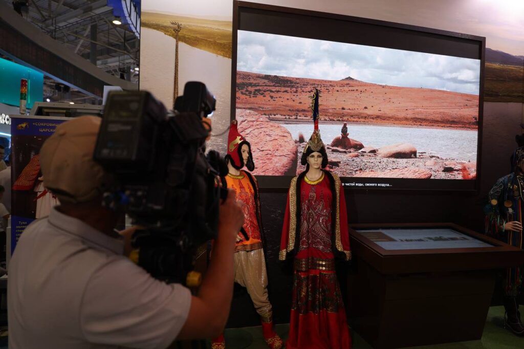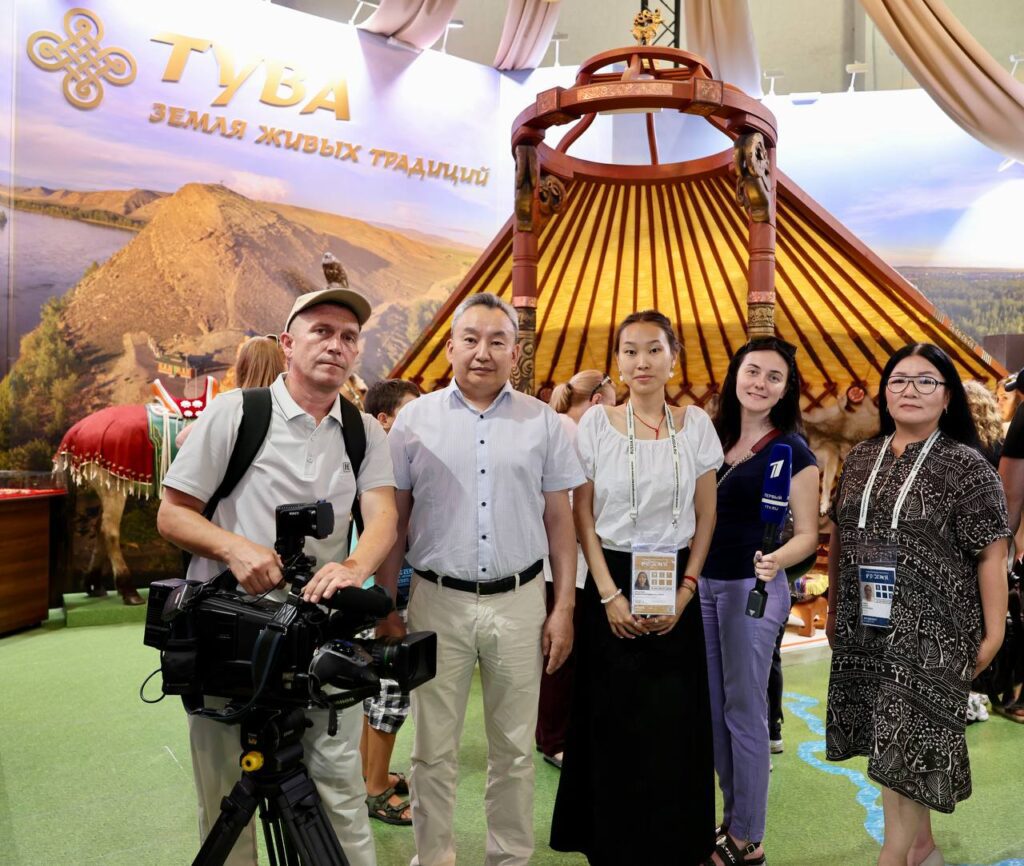 Полномочное представительство Республики Тыва в г. Москве пригласило съемочную команду Первого канала на стенд Тувы на ВДНХ в честь завершения Международной выставки-форума «Россия».