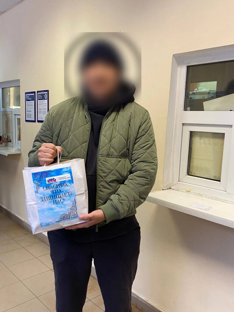 Студент Найыр Куулар посетил Городскую клиническую больницу имени Д.Д.Плетнева, где поздравил от лица Полпредства и землячества военнослужащего с Новым годом и передал посылку от земляков.