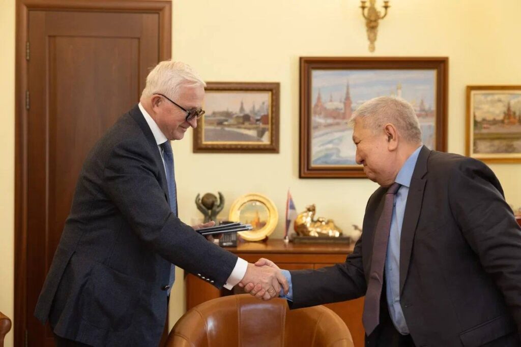 В здании Российского союза промышленников и предпринимателей состоялась важная встреча, организованная президентом РСПП Александром Шохиным. В мероприятии приняли участие исполняющий обязанности заместителя Председателя Правительства Республики Тыва Уран-оол Ондар, председатель регионального отделения РСПП в Республике Тыва Буян Тагаланов, советник Полномочного представительства Республики Тыва в Москве Владимир Чебодаев и вице-президент РСПП Сергей Мытенков.