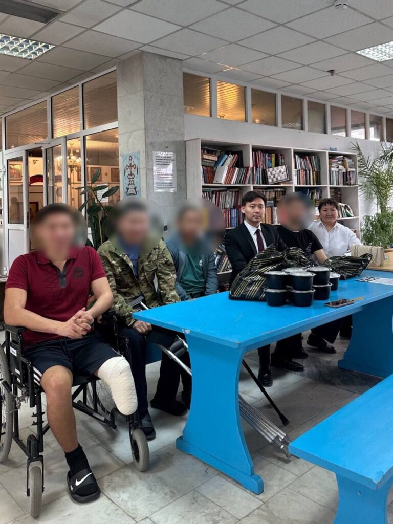 Они пообщалисьсбойцами по проблемным вопросам,узнали о ходе лечения и передали домашнюю еду из национальной кухни: ароматный суп из тувинской баранины и лепешки.