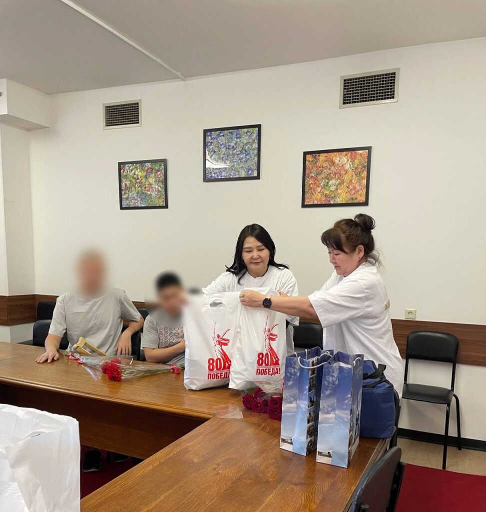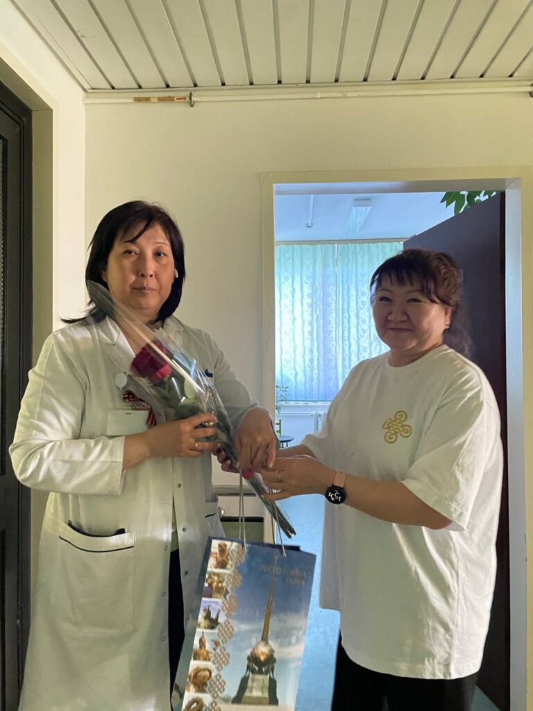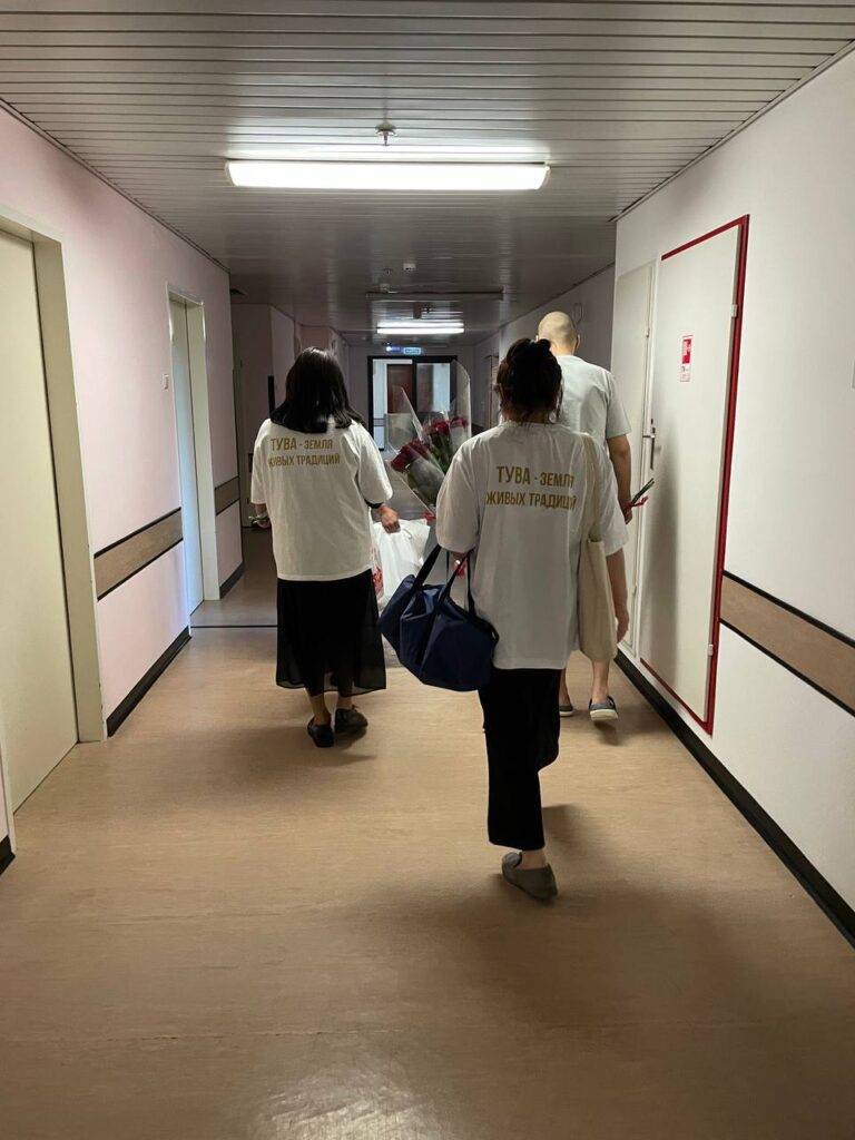 Сотрудницы Полпредства Чойгана Сандакова и Марина Баянай уже посетили Госпиталь для ветеранов войн №3. Они лично поздравили бойцов с наступающим праздником, поинтересовались ходом их лечения и передали теплые слова поддержки от всех жителей Тувы. Кроме того, бойцам были вручены подарки, вкусная домашняя еда, приготовленная по тувинским традициям, цветы и буддийские защитные обереги.
