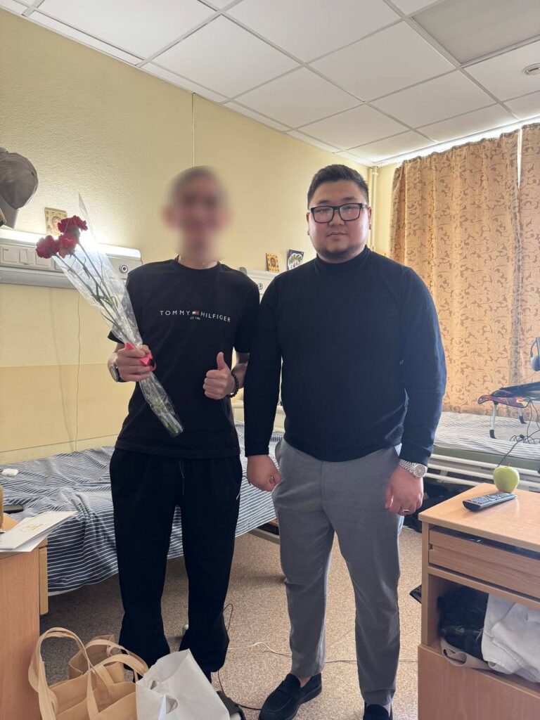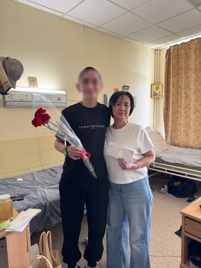 Сотрудница Полпредства Ноябрина Билва и Ооржак Чингис-Хаан навестили военнослужащих в Центральном военном клиническом госпитале Минобороны России. Они поздравили бойцов с наступающим 9 Мая, пообщались с ними, узнали о ходе лечения и передали подарки, а также домашнюю еду, приготовленную с заботой.
