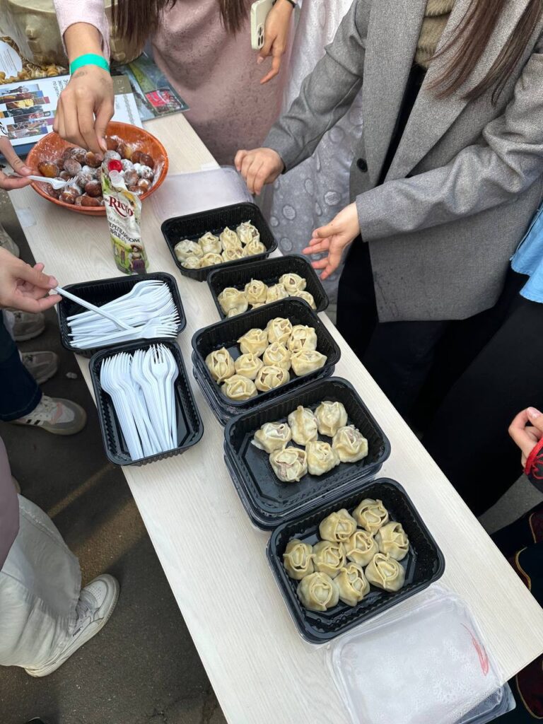 Конечно же, не обошлось без угощений! Всех присутствующих радушно встречали традиционными блюдами: сочными буузами, ароматным боорзаком и согревающим чаем с молоком. Настоящий вкус Тувы!