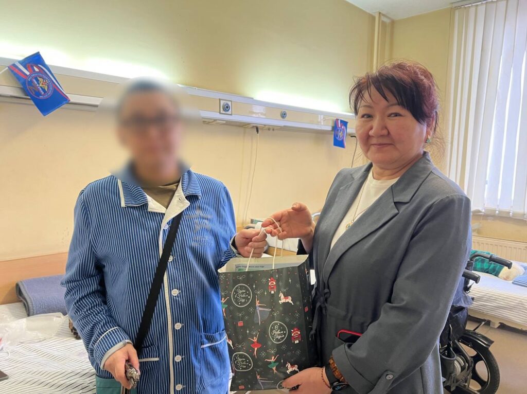 В рамках визита были переданы новогодние подарки. Мы пообщались с военнослужащим, уточнили состояние его здоровья и текущие потребности. С ним согласовано оказание помощи и содействие в восстановлении документов. Также состоялась беседа с лечащим врачом, в ходе которой получили информацию о ходе лечения и дальнейших медицинских нуждах, также поздравили с наступающим Новым годом. Также в ходе визита, сотрудники Полпредства пообщались с бойцами из других регионов, поздравили их с наступающим Новым годом и угостили тувинской домашней едой.